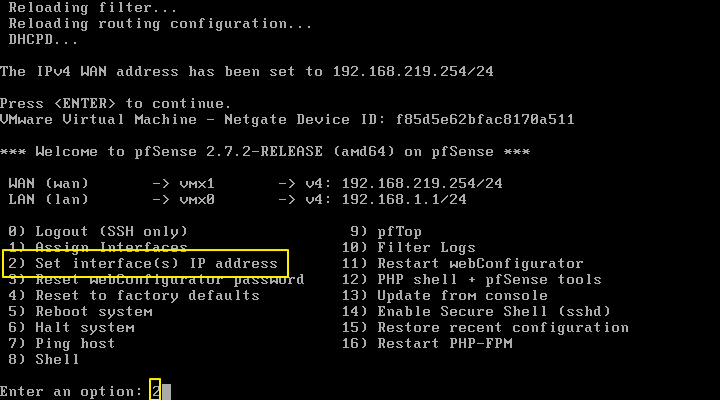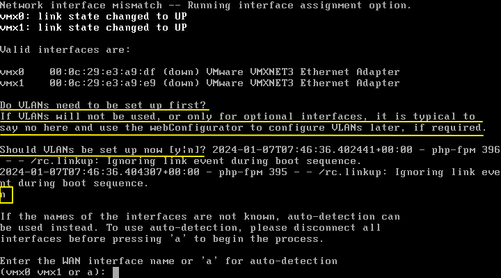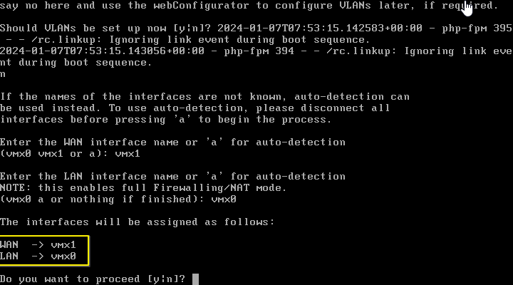 WAN -> vmx1, LAN -> vmx0 설정했는데 맞니? yes!