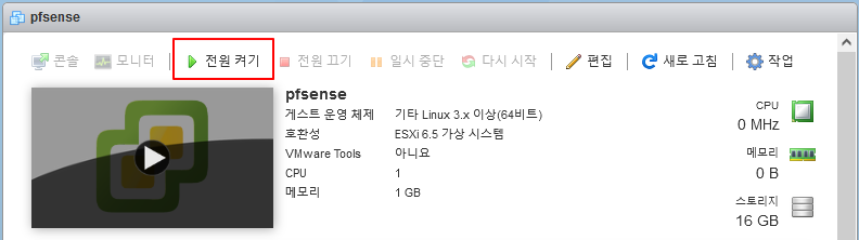 지금부터 ESXi 에 첫번째 VM 을 생성해서 pfSense 를 설치해보려고 해.