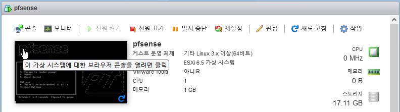 ESXi 에서 pfSense 가 설치된 결과 어떤 구성이 되었는지를 확인해볼까?