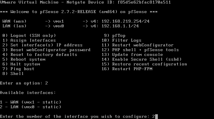 이번에는 LAN 인터페이스로 사용할 것의 이름은 vmx0