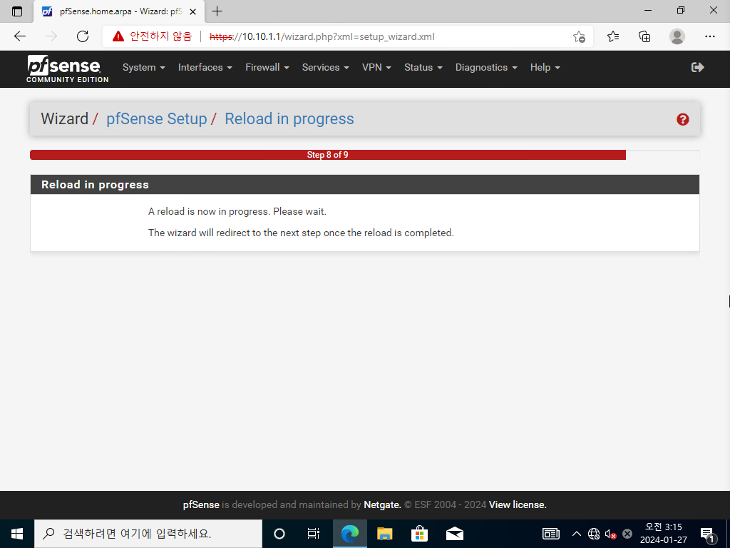 pfSense 가 새로 변경된 값으로 reload 가 완료되면 Setup 마법사가 완료되지.