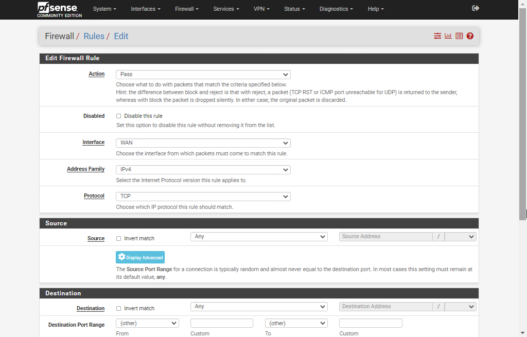 Edit Firewall Rule 섹션과 Source 섹션은 아무것도 수정할 것이 없지. Destination 섹션에서