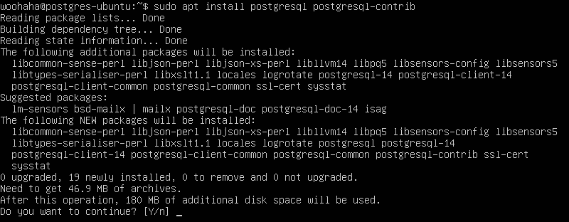 $ sudo apt install postgresql postgresql-contrib