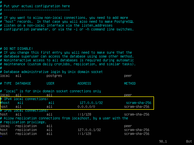 $ sudo vi /etc/postgresql/14/main/pg_hba.conf
