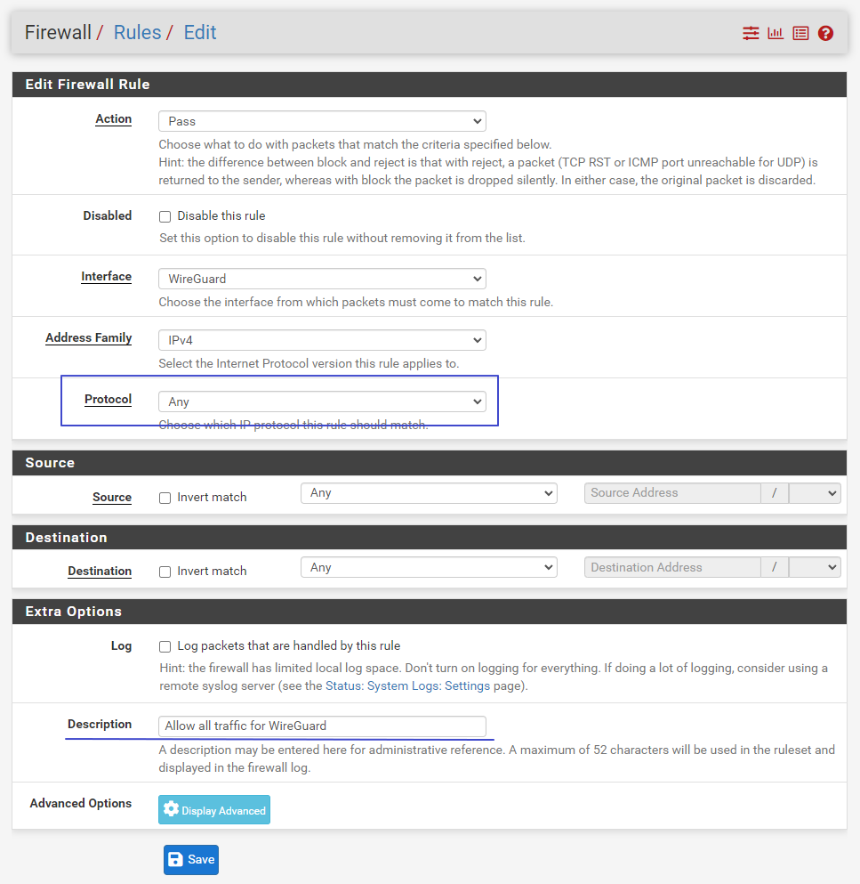 WireGuard 설치한 결과로 Firewall Rules 목록에 WireGuard 가 생겨나지.
