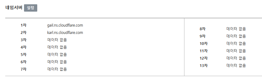 나는 가비아에서 도메인을 구입했고, cloudflare.com 으로 도메인 관리를 이전하기 위해서 가비아에서 제공하는 도메인의 네임서버 관리 화면에서 cloudflare.com 이 제공하는 네임서버 주소로 변경해 주었지(cloudflare.com 에 회원가입한 후 안내에 따라야 해).