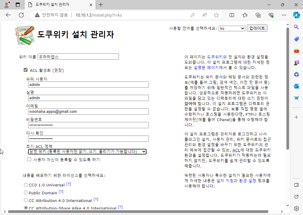 dokuwiki 설정하기