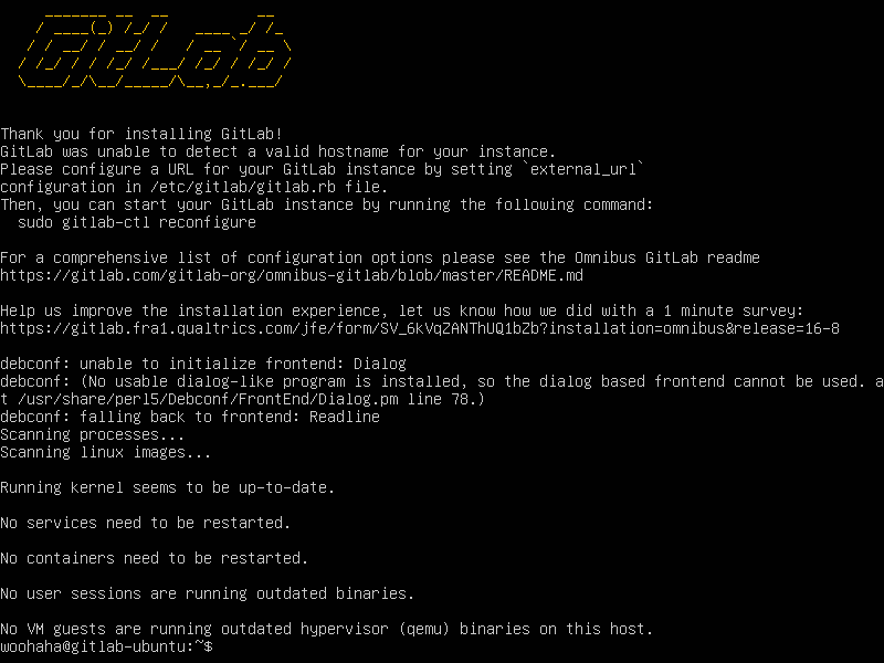 설치가 완료되면 GitLab 이라는 글자가 아스키 아트로 출력이 되지.