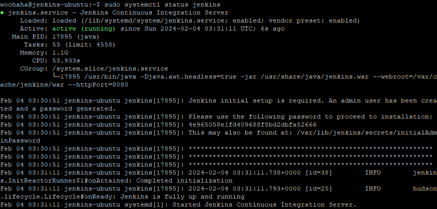 $ sudo cat /var/lib/jenkins/secrets/initialAdminPassword