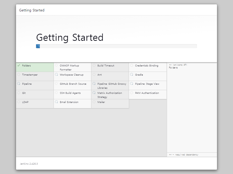 초기 비밀번호를 입력해서 잠금해제하면 플러그인을 설치하는 단계 화면이 표시되지.