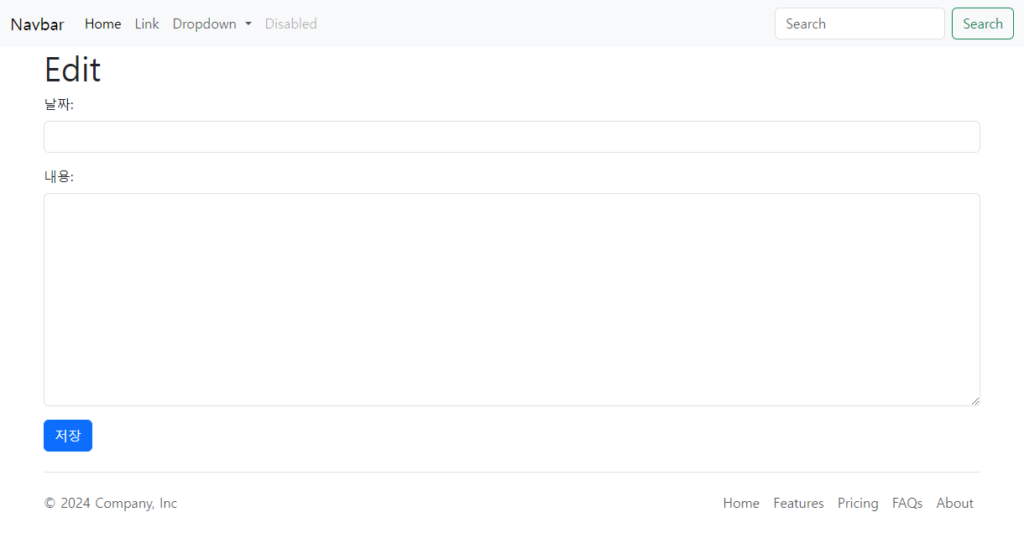 th:href=”@{/diary/edit/{id}(id=${diary[‘id’])}” : 일기 항목을 클릭했을 때 수정하는 화면으로 이동하게 하기 위한 URL 을 설정한다. /diary/edit/{id} 의 형식이며, {id} 자리에 일기의 고유번호값이 대입되도록 설정하였다.