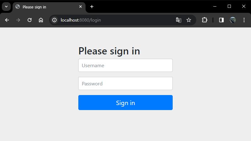 이 상태에서 실행시켜서 웹브라우저에 http://localhost:8080 으로 입력해보면 http://localhost:8080/login 으로 이동해서 로그인 화면이 표시가 된다.