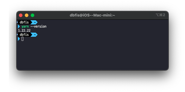 정상적으로 설치된 yarn 역시 --version 파라미터를 이용하여 버전정보를 확인할 수 있다.
