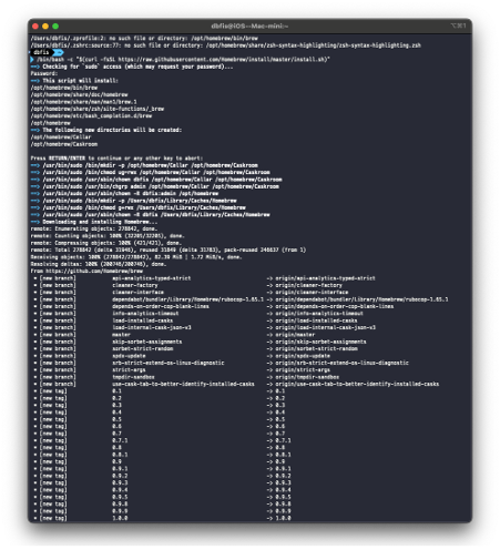 $ /bin/bash -c "$(curl -fsSL https://raw.githubusercontent.com/Homebrew/install/master/install.sh)"