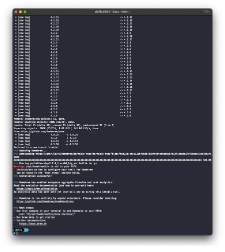정상적으로 설치가 되었다면 아래와 같이 Homebrew 버전정보가 표시된다.