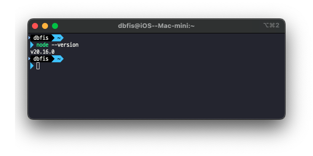 정상적으로 설치된 node 의 버전은 아래 명령어로 확인할 수 있다.
