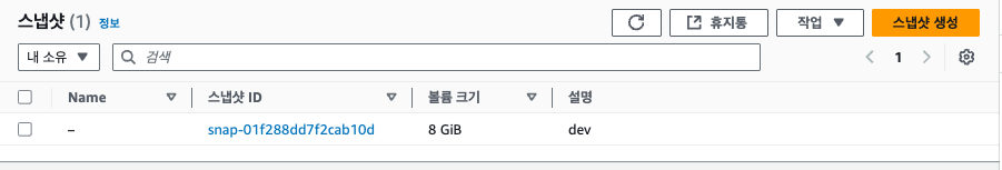 왼쪽의 Elastic Block Store 아래의 스냅샷 메뉴로 이동한다.