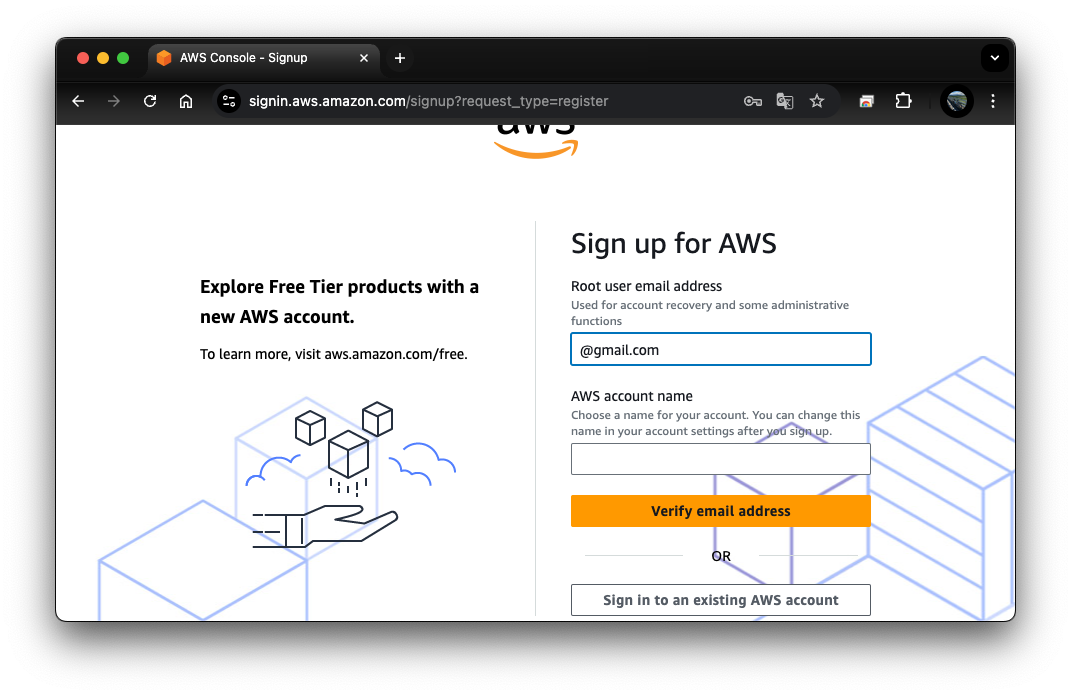 일단 AWS 계정에 가입하기 위해서는 이메일 주소가 필수이다.