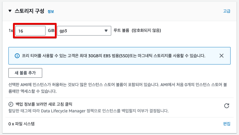 스토리지 용량은 프리 티어 사용자에게 최대 30GB 를 할당할 수 있게 해준다고 한다.