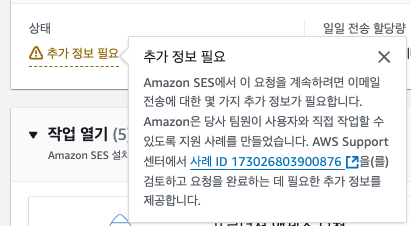 소유권한이 확인되면 Amazon SES 설정 시작 화면의 모습은 아래와 같이 변경된다.