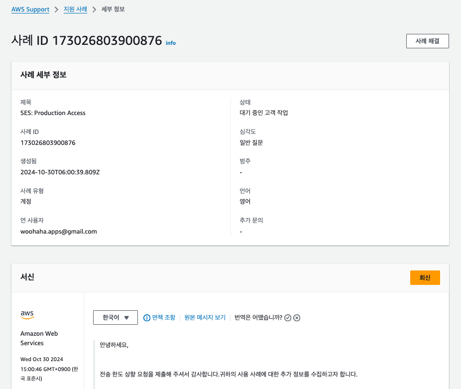 이 요청에 대한 검토 결과를 느긋하게 확인해보자. 2024년 10월 30일 15:01 요청 제출함.