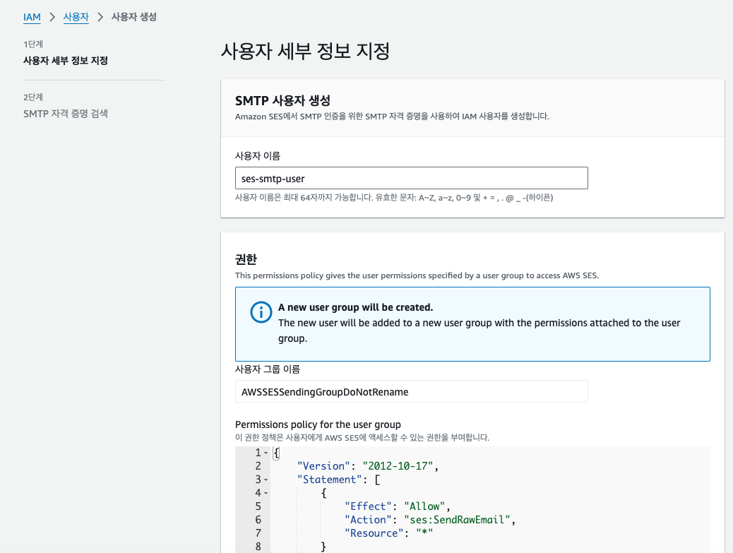 입력한 내용 (검증 이메일 주소와 전송 도메인) 을 확인하고 시작하자.