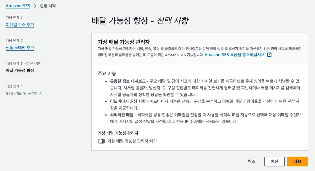 MAIL FROM 도메인은 입력값이나 선택값 변경 없이 다음으로 진행해도 된다.