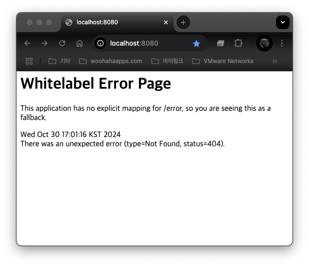 아직 화면 페이지에 대한 코딩은 하지 않았기 때문에 위와 같은 결과가 표시되는 것이다.