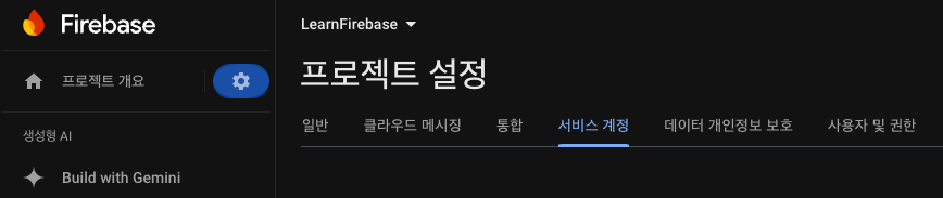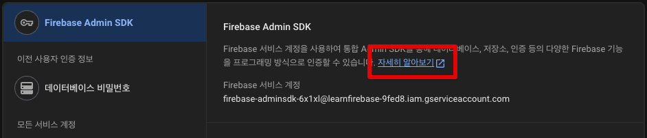 위 정보는 Firebase Admin SDK 화면의 링크에서 얻었다.