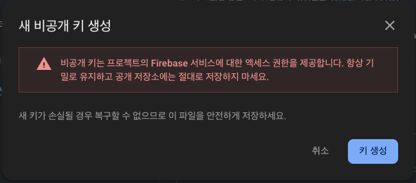 "새 비공개 키 생성" 버튼을 클릭하여 비공개 키를 생성한다.