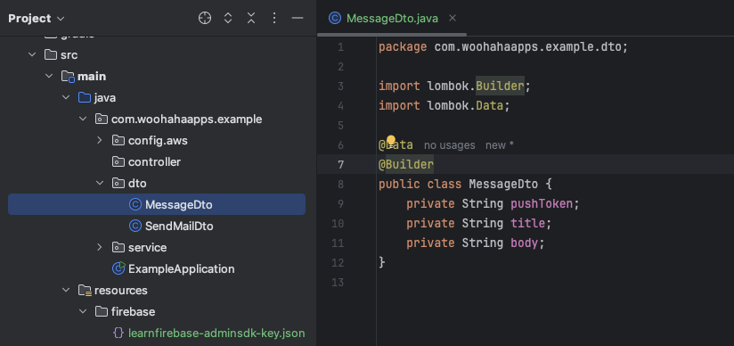 MessageDto messageDto = MessageDto.builder()