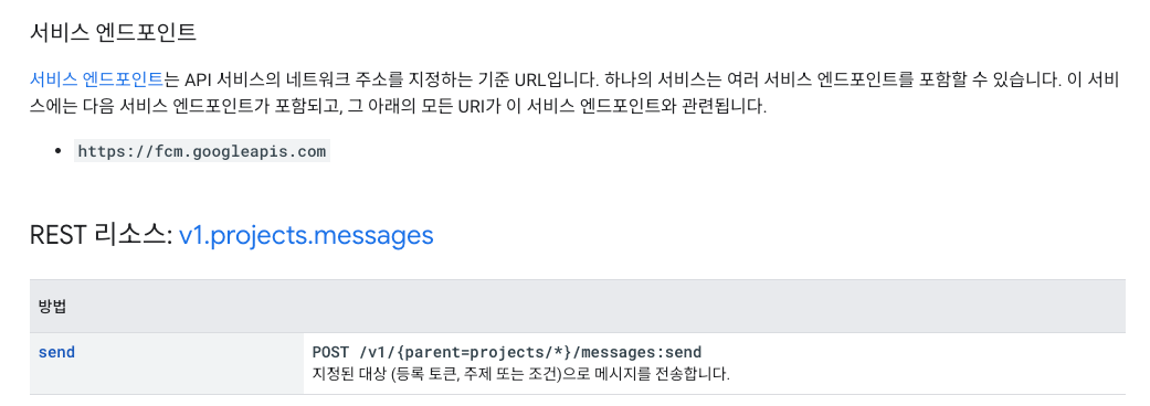 서비스 엔드포인트는 https://fcm.googleapis.com 이다.
