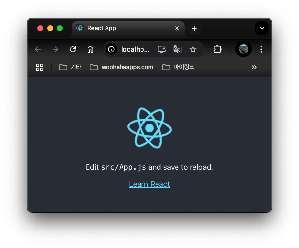 실제로 이 프로젝트가 실행된 결과를 보면 App.js 에 구현되어 있는 내용이 표시되고 있는 것을 확인할 수 있다.