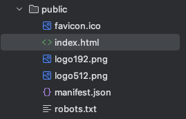 public 디렉토리와 src 디렉토리를 펼쳐서 하위에 어떤 파일들이 구성되어 있는지를 볼 수 있게 해봤다.