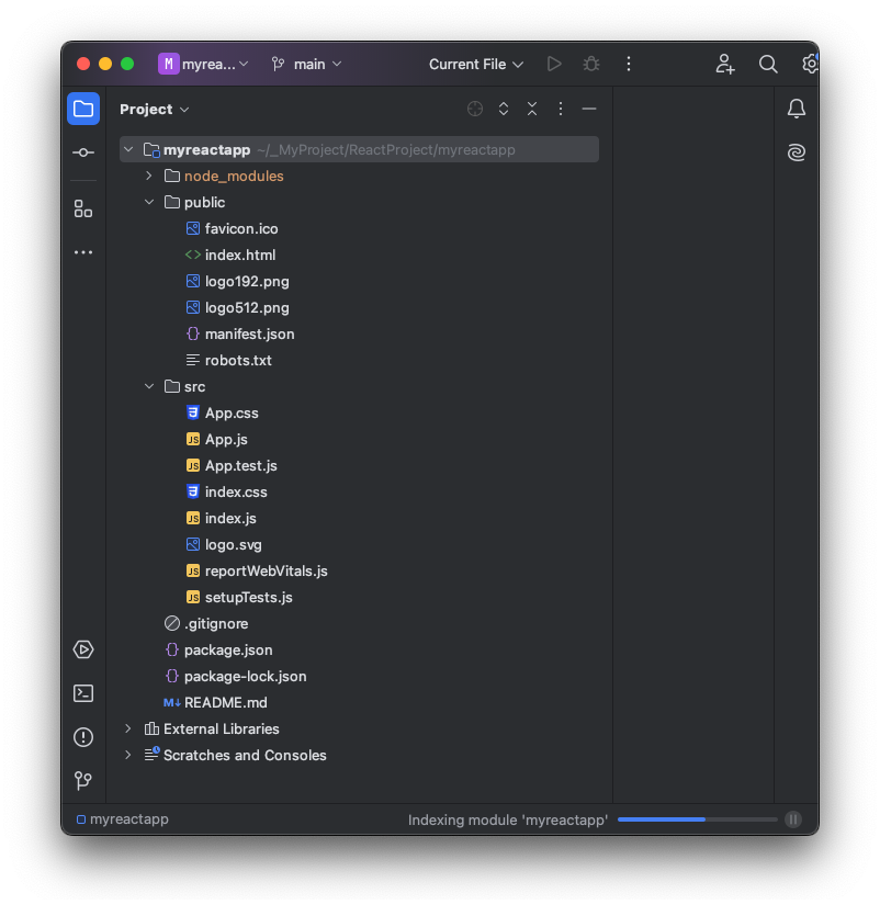 IntelliJ IDEA 나 Visual Studio Code 를 이용해서 myreactapp 프로젝트를 연다.