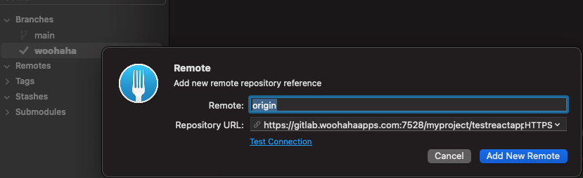 이제 로컬의 woohaha 브랜치를 push 해서 merge request 를 수행할 수 있게 된다.
