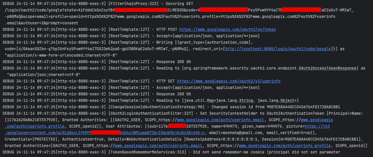 이 상태에서 프로젝트를 다시 실행시키면 구글 계정으로 로그인하는 작업 역시 깔끔하게 성공하게 된다.