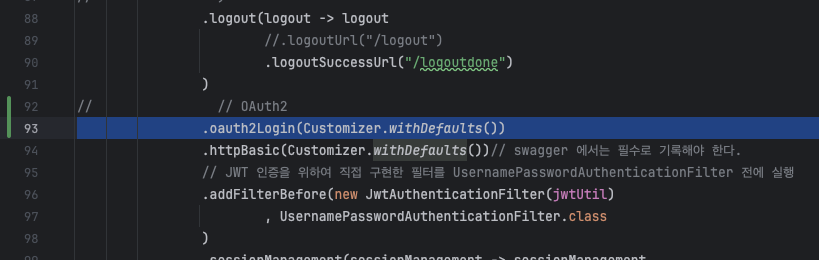 .httpBasic(Customizer.withDefaults())// swagger 에서는 필수로 기록해야 한다.