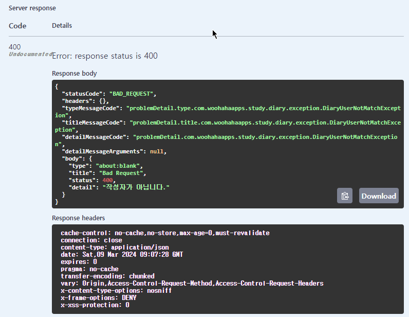 - 일기작성자 다름 : DiaryUserNotMatchException