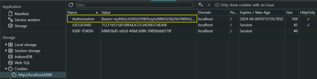 jwtToken 에 저장된 값은