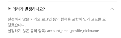 카카오계정 이메일 정보는 권한 없음 상태여서 심사가 필요하므로 이번 로직 구현에서는 제외하기로 한다.