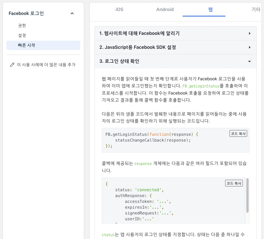 Facebook 로그인 기능을 구현할 제품으로 웹 을 선택하였다.