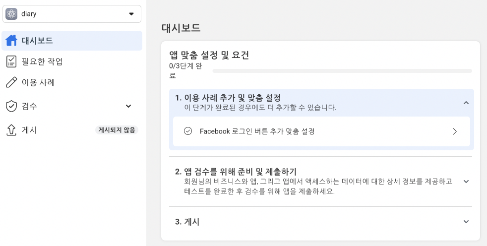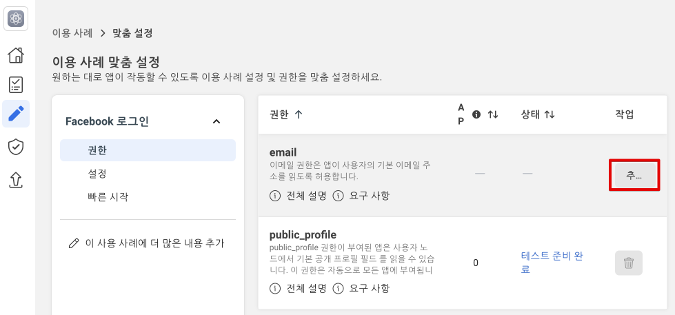 페이스북 로그인 역시 서비스 운영시에는 검수를 진행해야 한다.