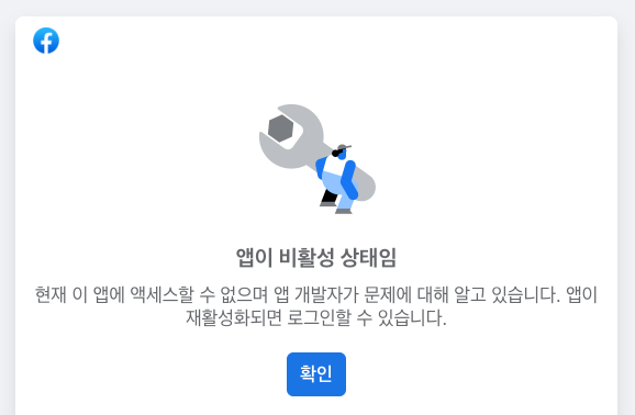 검수를 완료하지 않은 상태에서 테스트 계정이 아닌 다른 계정을 이용하여 로그인할 경우 아래와 같은 화면이 표시된다.