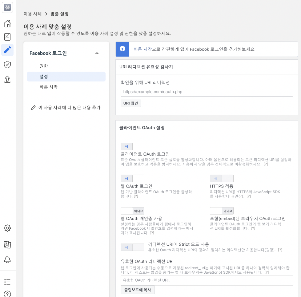[소셜로그인] Facebook(Meta) 개발자 센터 - 소셜 로그인 설정 본문