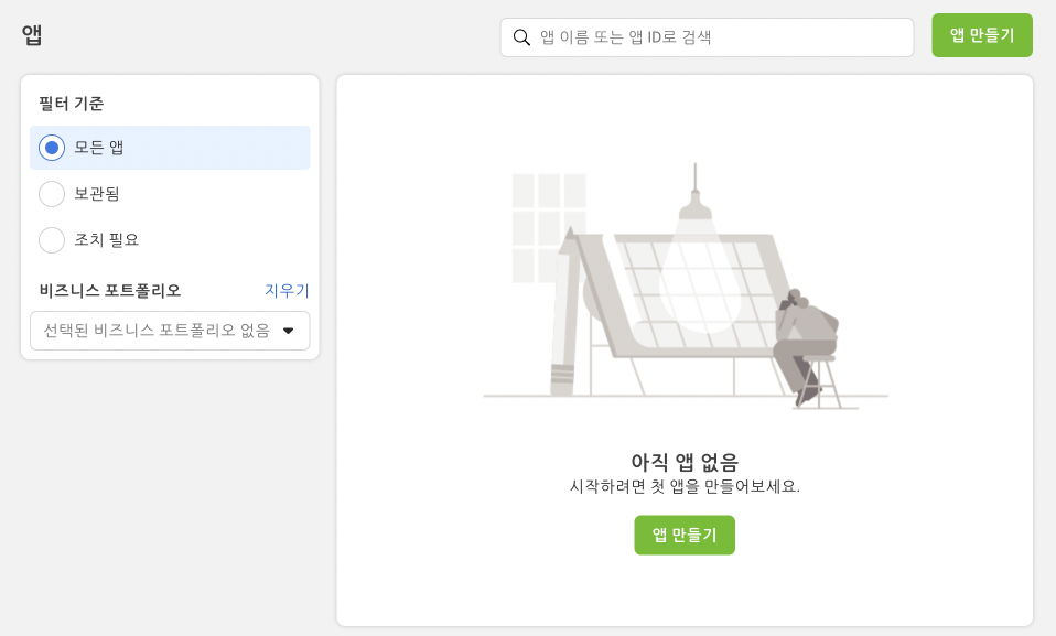 앱 만들기 - 비즈니스 포트폴리오 선택