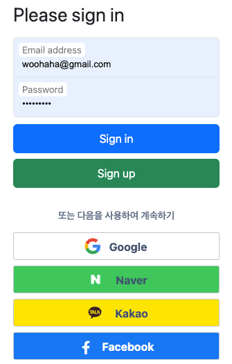 새로 추가한 Facebook 버튼의 URL 은 /oauth2/authorization/facebook 이다.