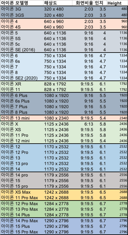 아이폰 모델별 해상도 본문
