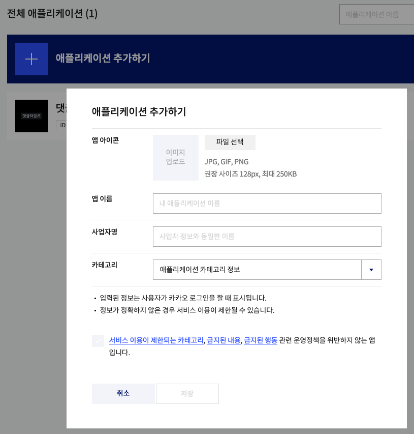 카카오톡 공유는 카카오 개발자 사이트에 등록해야 가능하다.