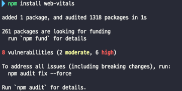 이 오류를 수정하려면 npm 을 이용하여 web-vitals 패키지를 설치하면 된다.